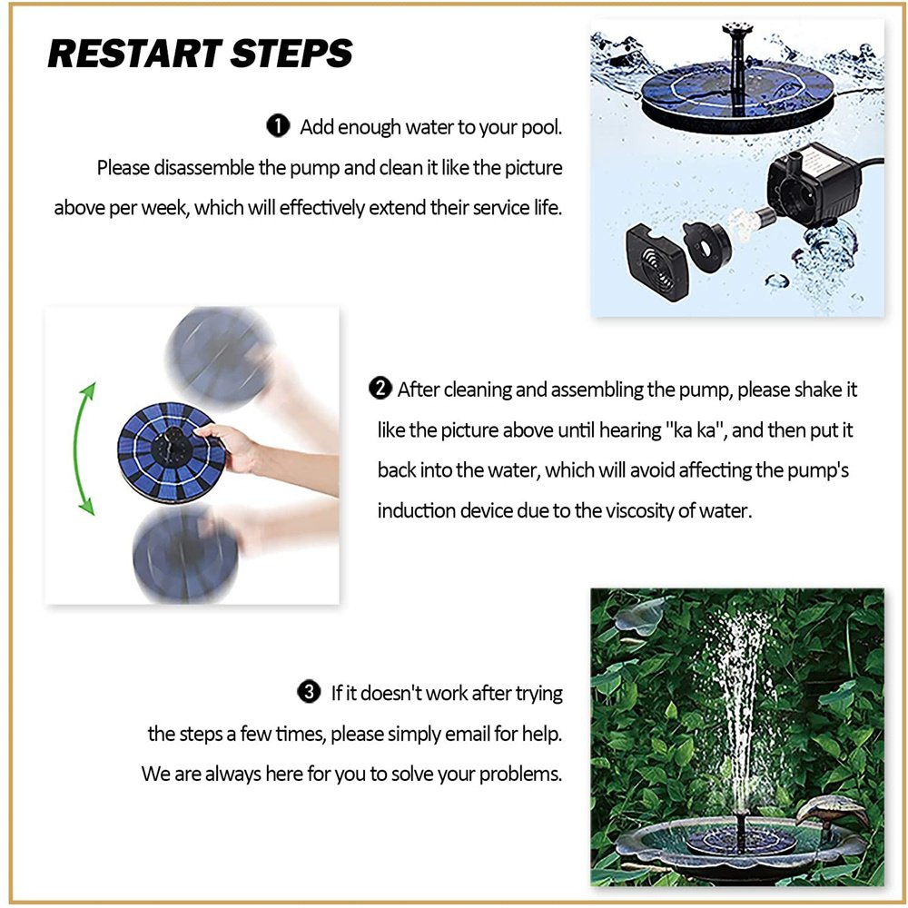 1. make sure put enough water in the fountain, so pump can stay